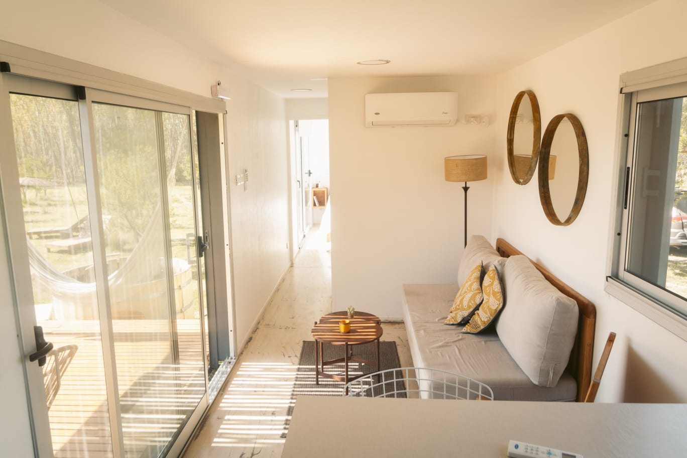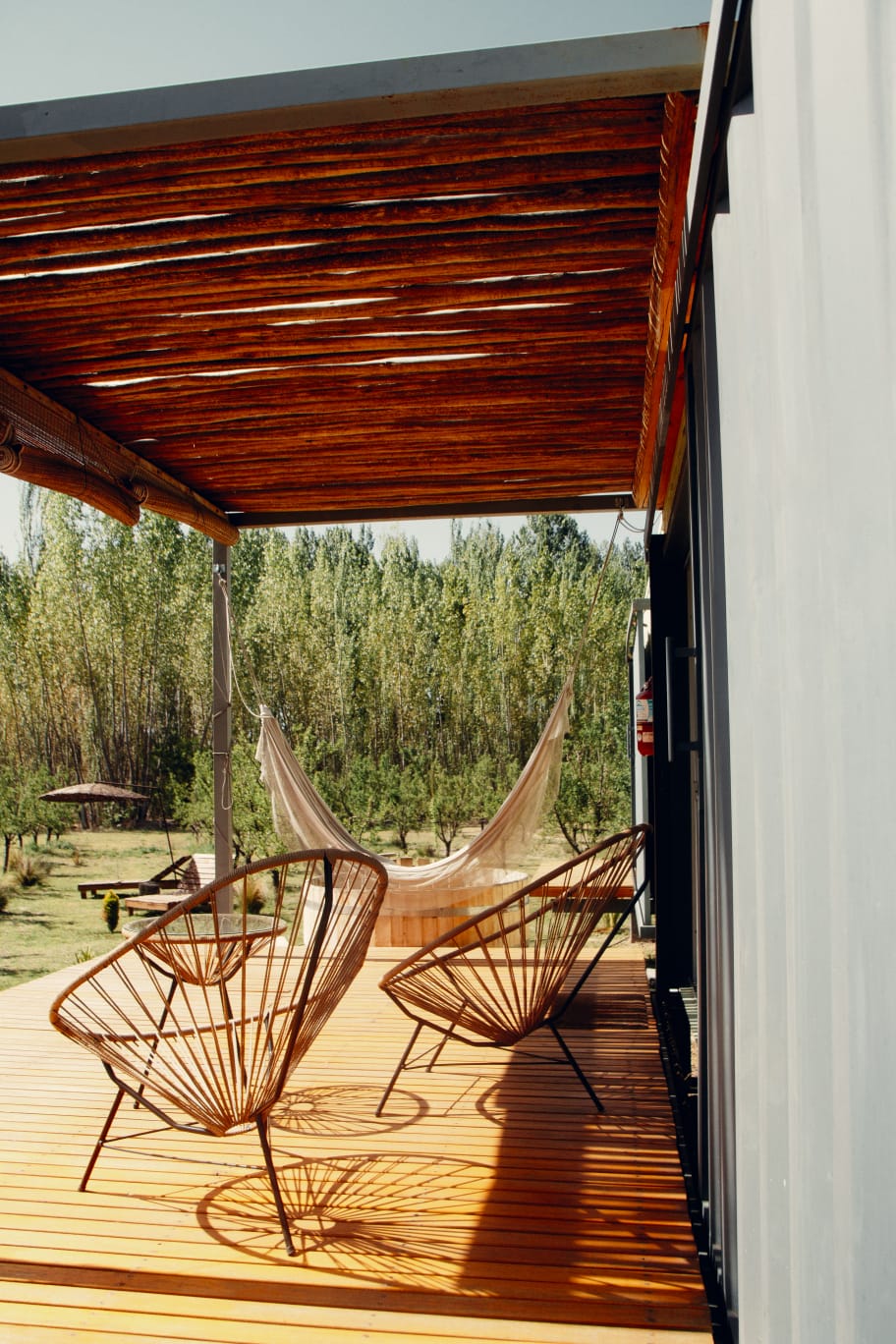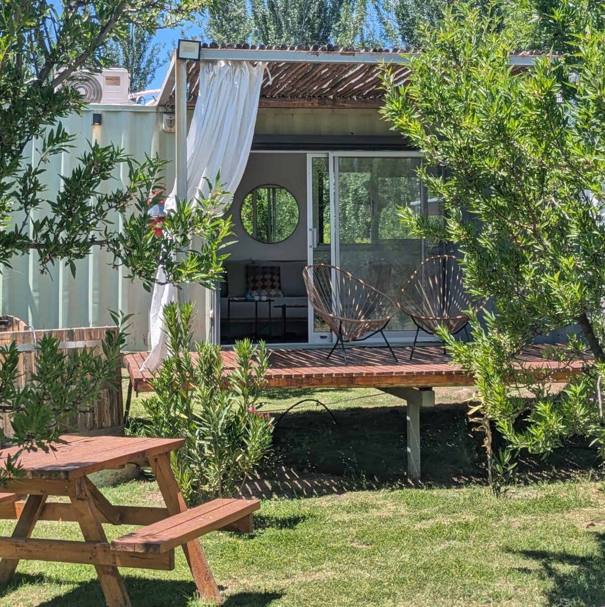 Enclavadas en medio de una plantación de almendros, cuya variedad de almendra da origen al nombre del establecimiento, contamos con 3 cabañas con una capacidad máxima de 3 personas, hechas con contenedores marítimos reciclados.
