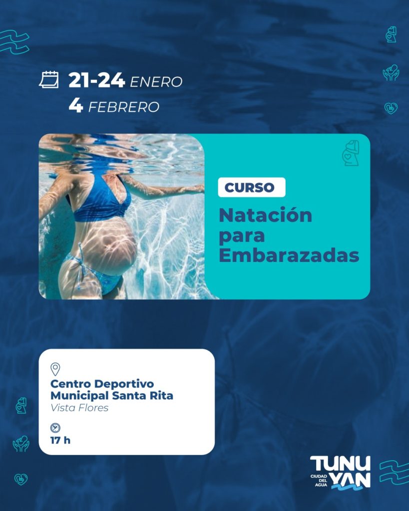 La actividad Acua Mamá se realizará el miércoles 21 de enero, a las 17 horas en el Centro Deportivo Municipal Santa Rita, organizada por el área de Salud. Estará a cargo de las licenciadas Ariadna Campos y Carina Muñoz, quienes guiarán a las futuras mamás en ejercicios especialmente diseñados para esta etapa. La propuesta busca ofrecer un espacio seguro y beneficioso, donde las embarazadas puedan cuidar su salud y bienestar a través de la gimnasia en el agua.