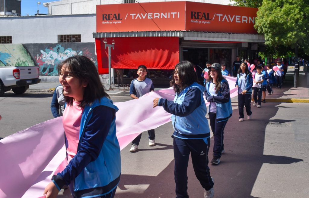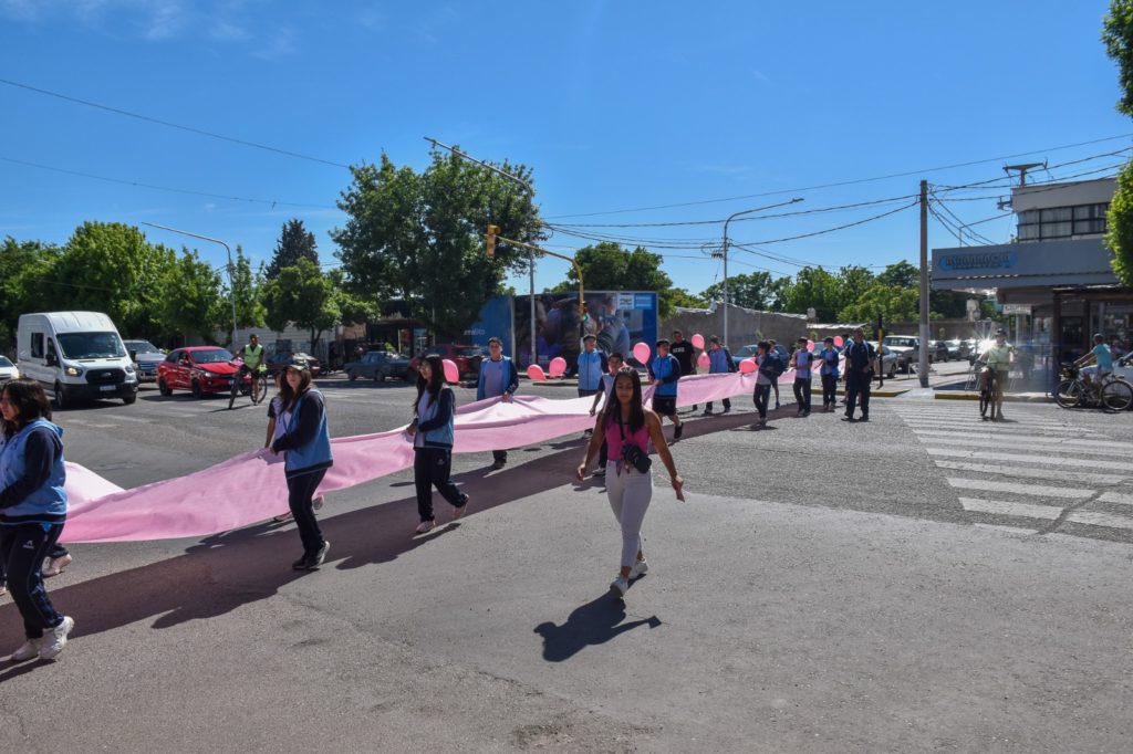 En el marco del Mes Internacional de Concientización sobre el Cáncer de Mama, se realizó una caminata por las calles céntricas de Tunuyán con la participación de estudiantes de 6° y 7° grado de la Escuela Adventista. La actividad fue organizada por la Dirección de Desarrollo Humano y Salud, con el objetivo de promover la prevención y detección temprana. Durante el recorrido guiados por dos grandes banderas rosadas, se entregaron globos y folletos informativos. “Para aquellas mujeres que no logramos visitar hoy, queremos pedirles que no se olviden de cuidarse. El cáncer de mama detectado a tiempo salva vidas”, dijo Gonzalo, alumno de 6° grado.