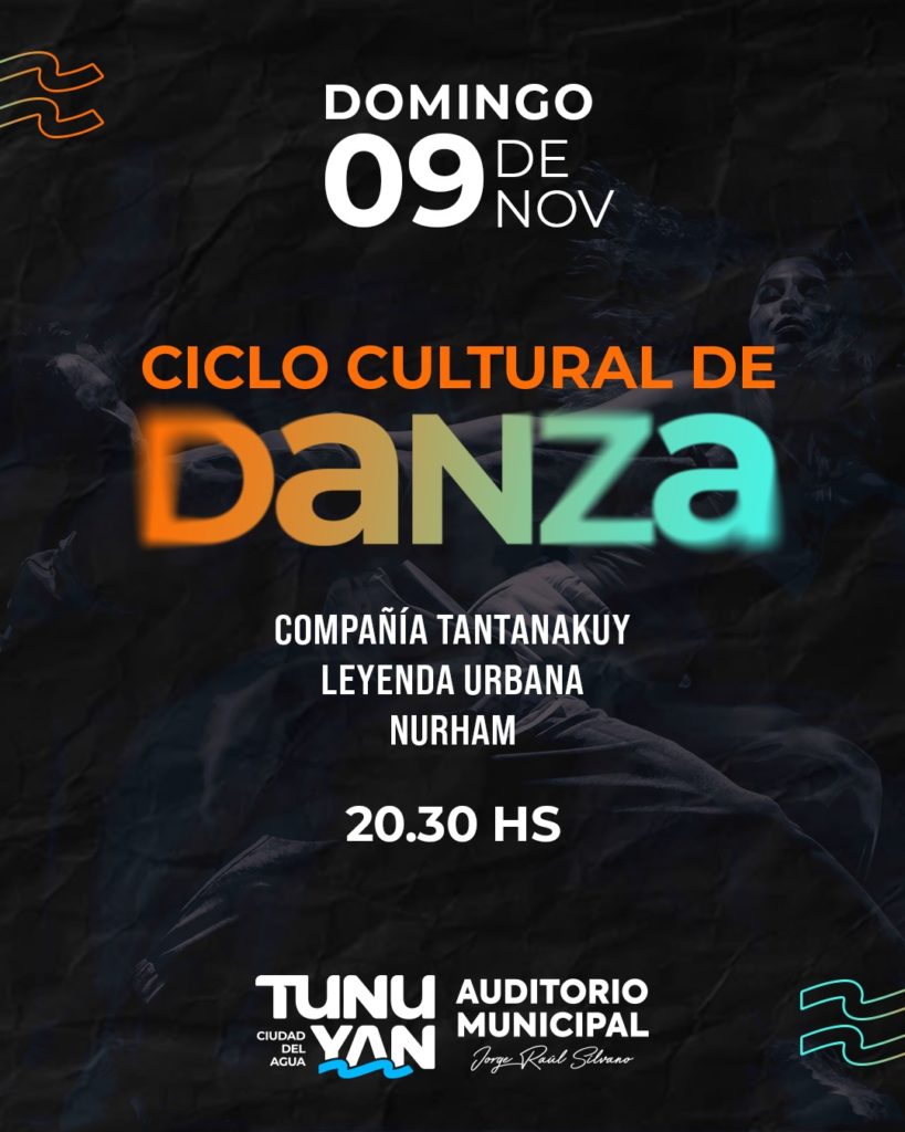 El próximo domingo 09 de noviembre continúa el Ciclo Cultural de Danzas en el Auditorio Municipal Dr. Jorge Raúl Silvano, con una nueva jornada destinada al arte en movimiento. La propuesta organizada por el municipio, contará con dos funciones, protagonizadas por academias y ballets locales que compartirán con el público sus aprendizajes, habilidades y destrezas.