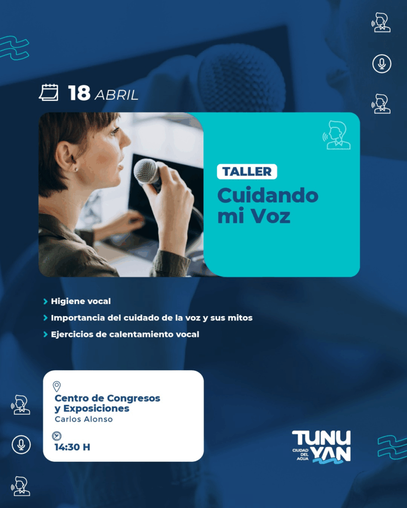 Como cierre de esta propuesta, se realizará el taller “Cuidando mi voz”, un espacio pensado para aprender a cuidar y potenciar la voz en la vida cotidiana y también en el ámbito profesional. La actividad tendrá lugar el sábado 18 de abril a las 14.30 en el Centro de Congresos y Exposiciones Carlos Alonso.