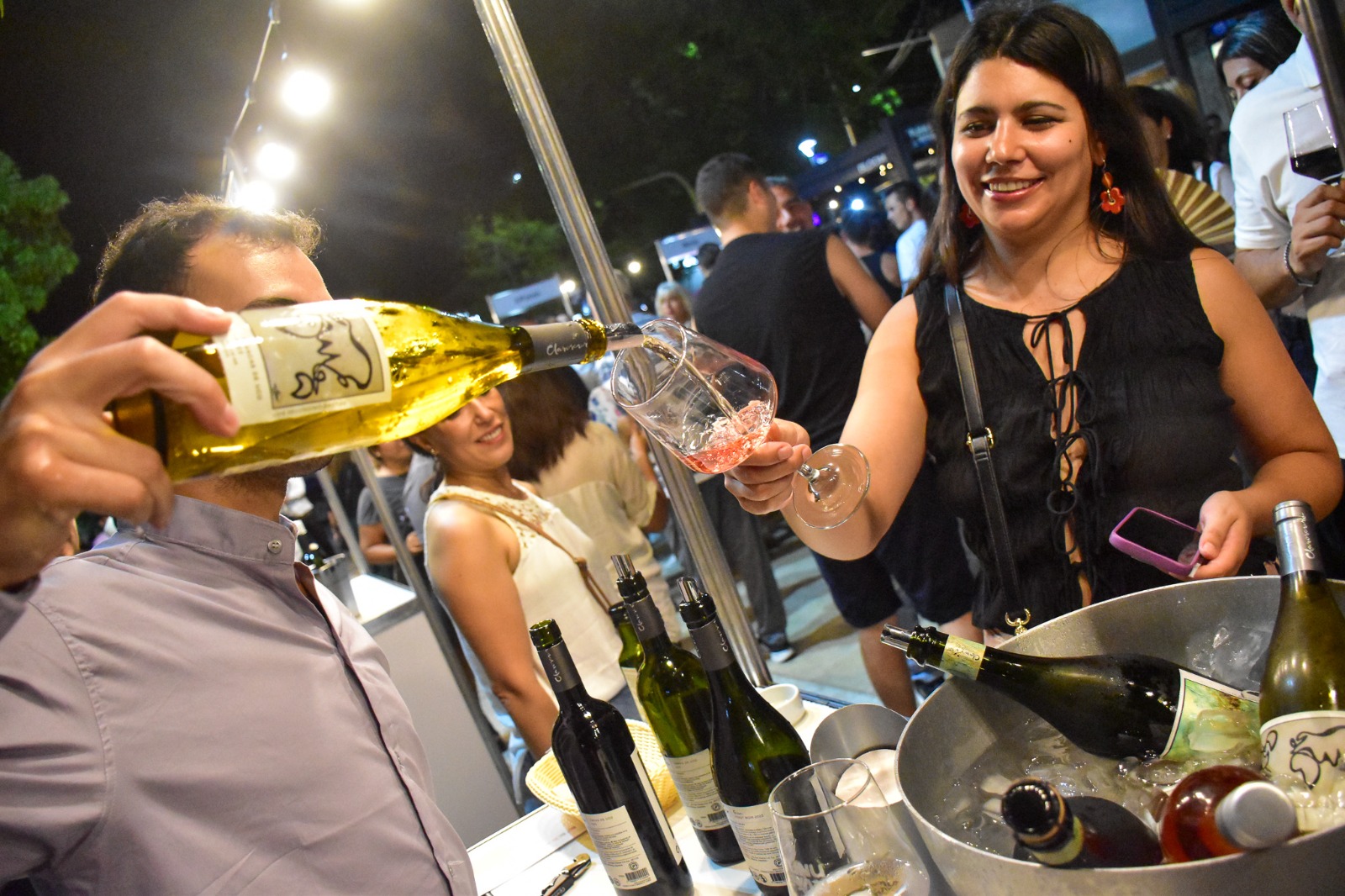 La calle Pueyrredón se convirtió en una peatonal del vino, con juegos de livings, sector de fotos y espacios de descanso. Aunque la noche estuvo amenazada por la lluvia, la actividad se desarrolló con normalidad y una gran presencia de público. También participaron stands de promoción turística del Valle de Uco, a través de las áreas de Turismo de Tunuyán, Tupungato y San Carlos, reforzando la integración regional. Bodegas participantes: Respiro; By Broner; Alpasión; Hinojosa; Los Parrales; El Náufrago; Claroscuro; Vinos Manija; Finca Don Carlos; El Vistaflorino; Bodega Giuliani; Giménez Riili; Suspiro del Viento; De Tal Palo; Finca del Nunca Jamás; Familia Zaina; Piedra Negra; Domaine Bousquet; Atrapados; Familia Giaquinta.