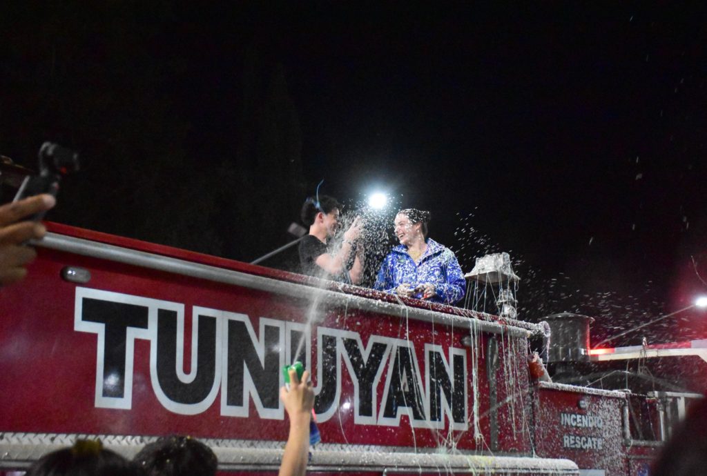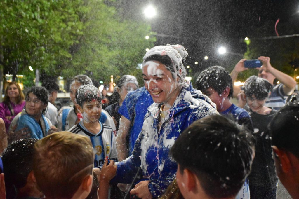 La caravana que acompañó a Josefina desde el ingreso al distrito hasta la plaza fue encabezada por los Bomberos Voluntarios. A su lado viajaba su hermano Julián, mientras que sus padres, Jesús y Noelia, la esperaban entre abrazos. El grito de “¡Dale campeona!” se escuchó fuerte entre la multitud que la recibió con orgullo.