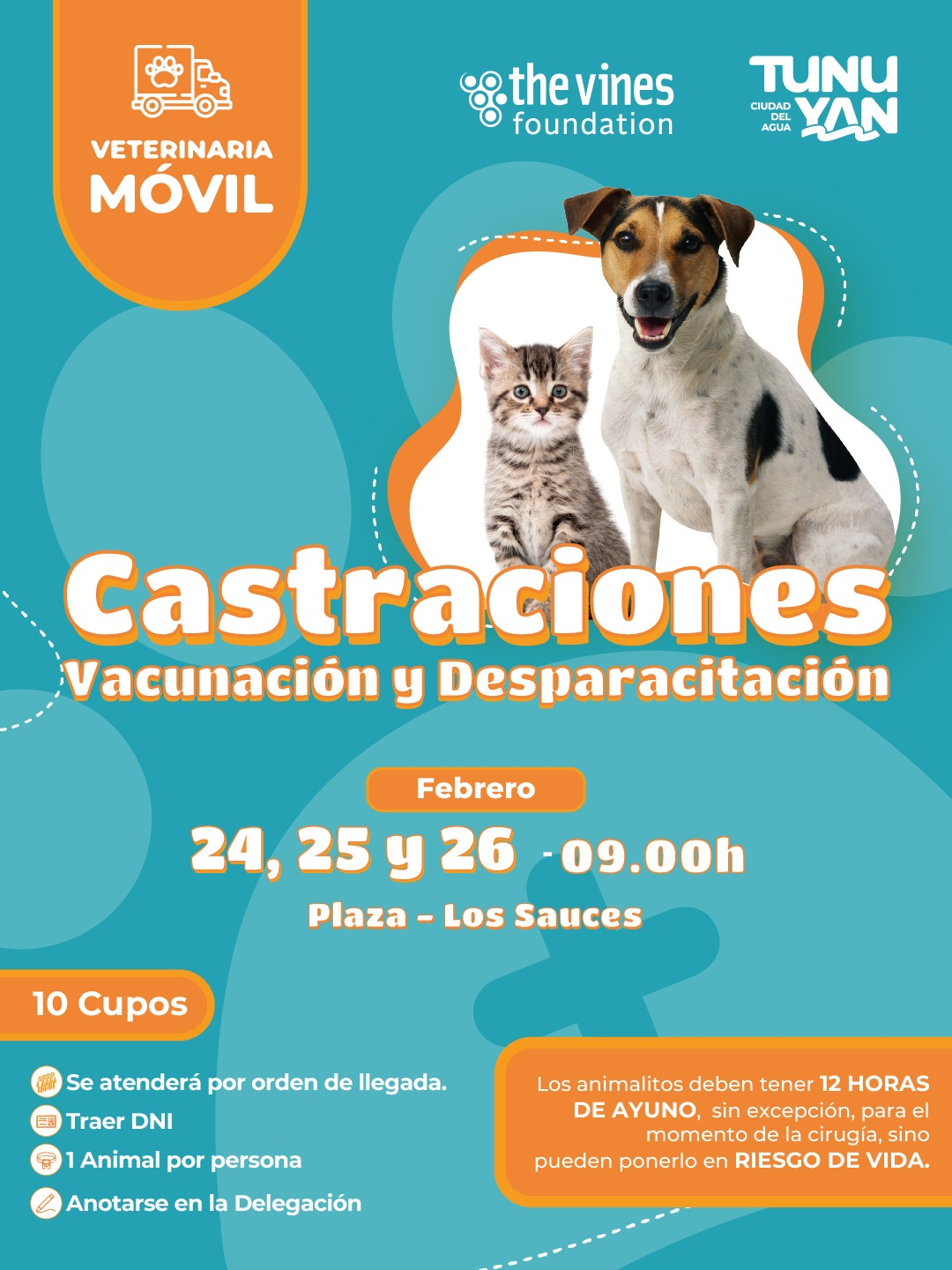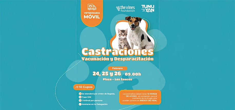 Este operativo, organizado por la Municipalidad de Tunuyán junto a la Fundación The Vines, busca promover el cuidado responsable de las mascotas y la salud comunitaria. La propuesta refuerza el compromiso de brindar acceso a servicios veterinarios esenciales, con un mensaje claro: la prevención y el bienestar animal también son parte de la calidad de vida de nuestra gente.