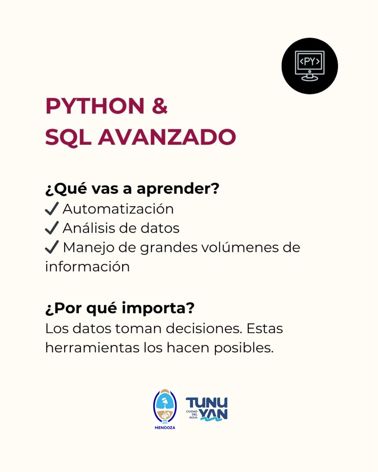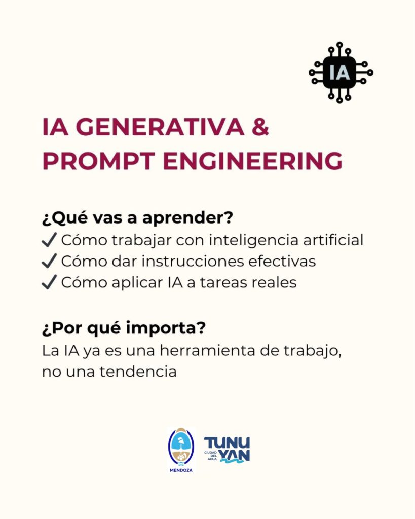 Desde la Dirección de Desarrollo Económico, se invita a la comunidad a participar de las capacitaciones impulsadas por la Subsecretaría de Empleo y Capacitación de la Provincia de Mendoza, orientadas al fortalecimiento de habilidades tecnológicas y a la generación de nuevas oportunidades laborales.