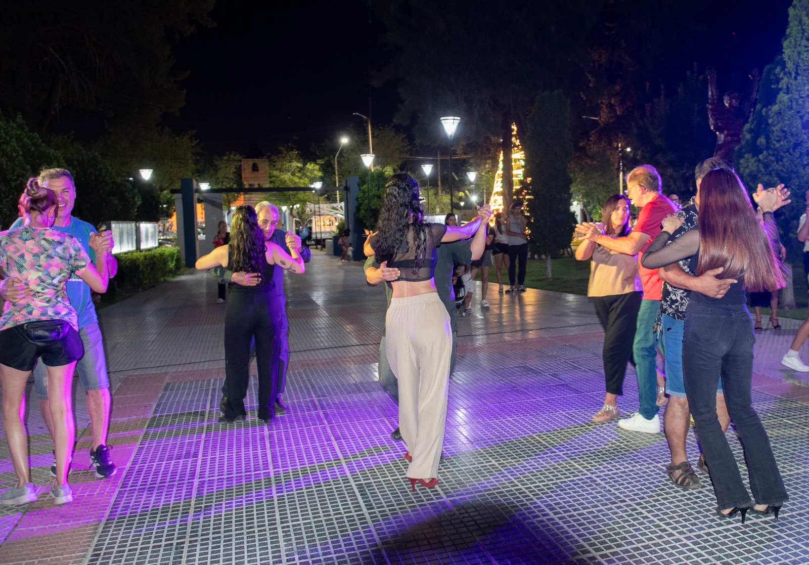 En el marco del Día Internacional del Tango, la Dirección de Cultura junto a las escuelas y academias de danza del departamento convocaron ayer a la comunidad a participar de Patio de Milonga, un encuentro cultural abierto y gratuito que se realizó en la Plaza Departamental. La actividad comenzó a las 21 horas y tuvo como objetivo celebrar y revalorizar el tango como danza tradicional argentina, acercando su arte y su historia a vecinos y visitantes.