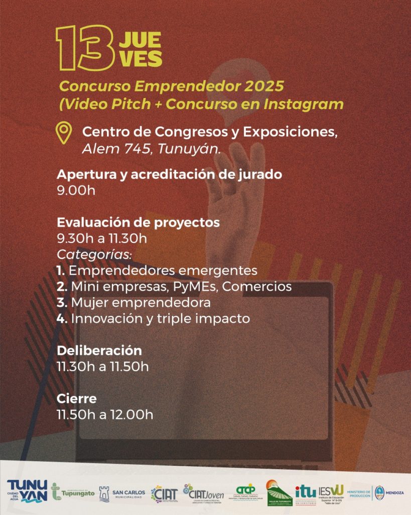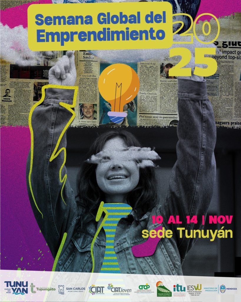 Del 10 al 14 de noviembre se desarrollará la Semana Global del Emprendimiento 2025. Una iniciativa articulada entre los municipios valletanos y las Cámaras de Comercio de Tunuyán, San Carlos y Tupungato, el Ministerio de Producción – Gobierno de la Provincia, el Instituto Tecnológico Universitario y el IES N° 9-015 «Valle de Uco». El evento busca fortalecer el ecosistema emprendedor local a través de charlas, talleres, ferias y un concurso de ideas innovadoras, generando espacios de aprendizaje, inspiración y vinculación.