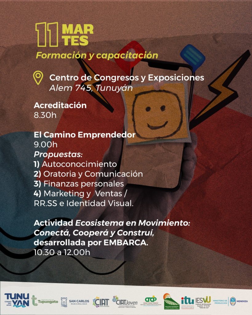 Además, se desarrollará la actividad ecosistémica en movimiento: “Conectá, Cooperá y Construí”, a cargo de EMBARCA, que promueve el trabajo colaborativo y la construcción de redes entre emprendedores.