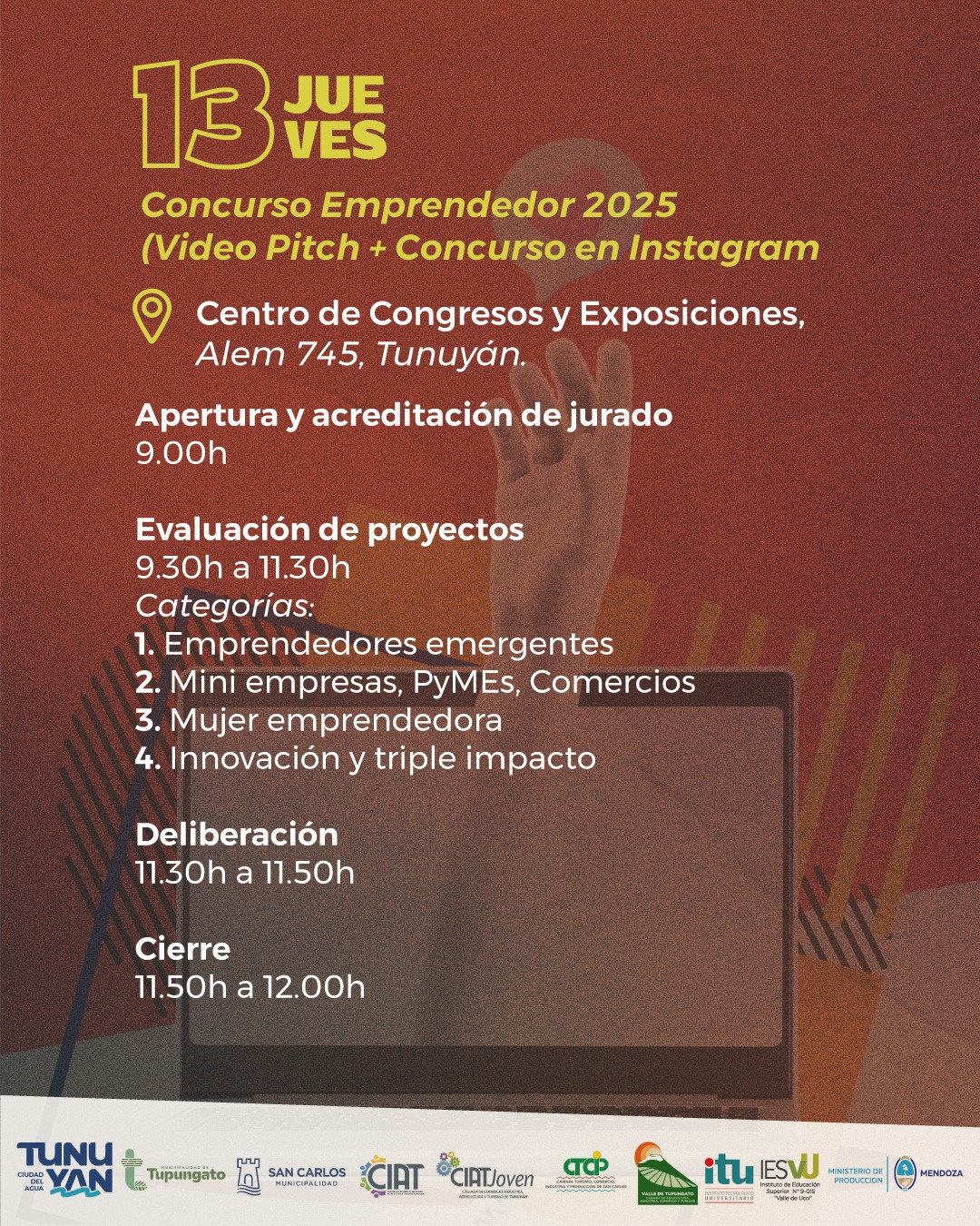 Del 10 al 14 de noviembre se desarrollará la Semana Global del Emprendimiento 2025. Una iniciativa articulada entre los municipios valletanos y las Cámaras de Comercio de Tunuyán, San Carlos y Tupungato, el Ministerio de Producción – Gobierno de la Provincia, el Instituto Tecnológico Universitario y el IES N° 9-015 «Valle de Uco». El evento busca fortalecer el ecosistema emprendedor local a través de charlas, talleres, ferias y un concurso de ideas innovadoras, generando espacios de aprendizaje, inspiración y vinculación.