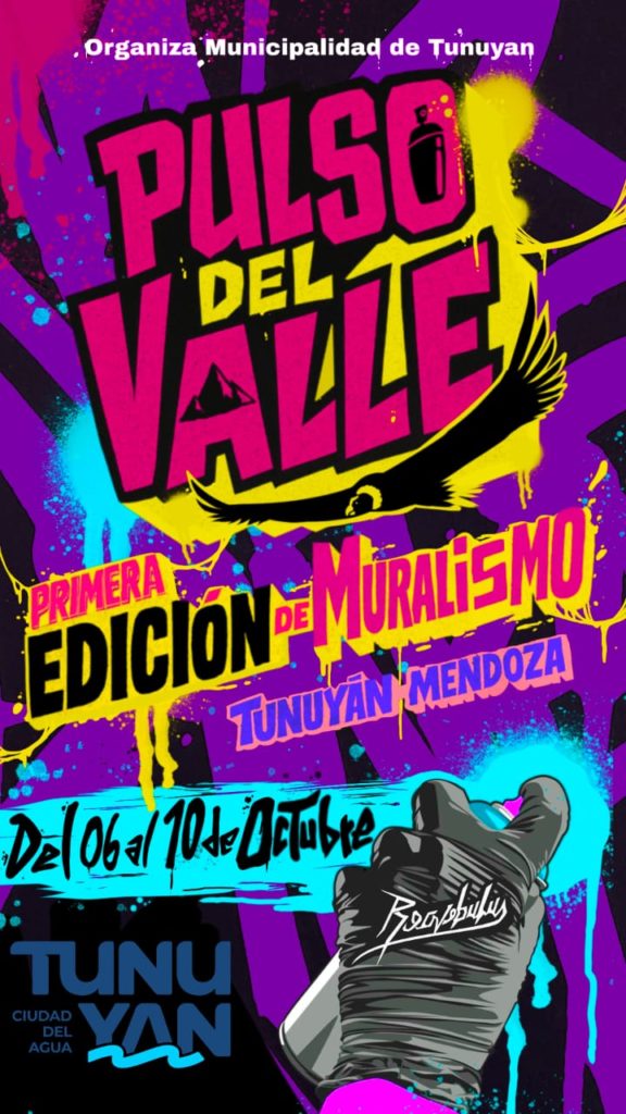 Del 6 al 10 de octubre se realizará “Pulso del Valle”, el primer encuentro de muralismo de la región. La actividad se desarrollará en el Centro de Deportes, ubicado en calle Julio Argentino Roca 249, con la participación de artistas de distintas provincias quienes intervendrán las paredes del lugar plasmando su arte y magia.
