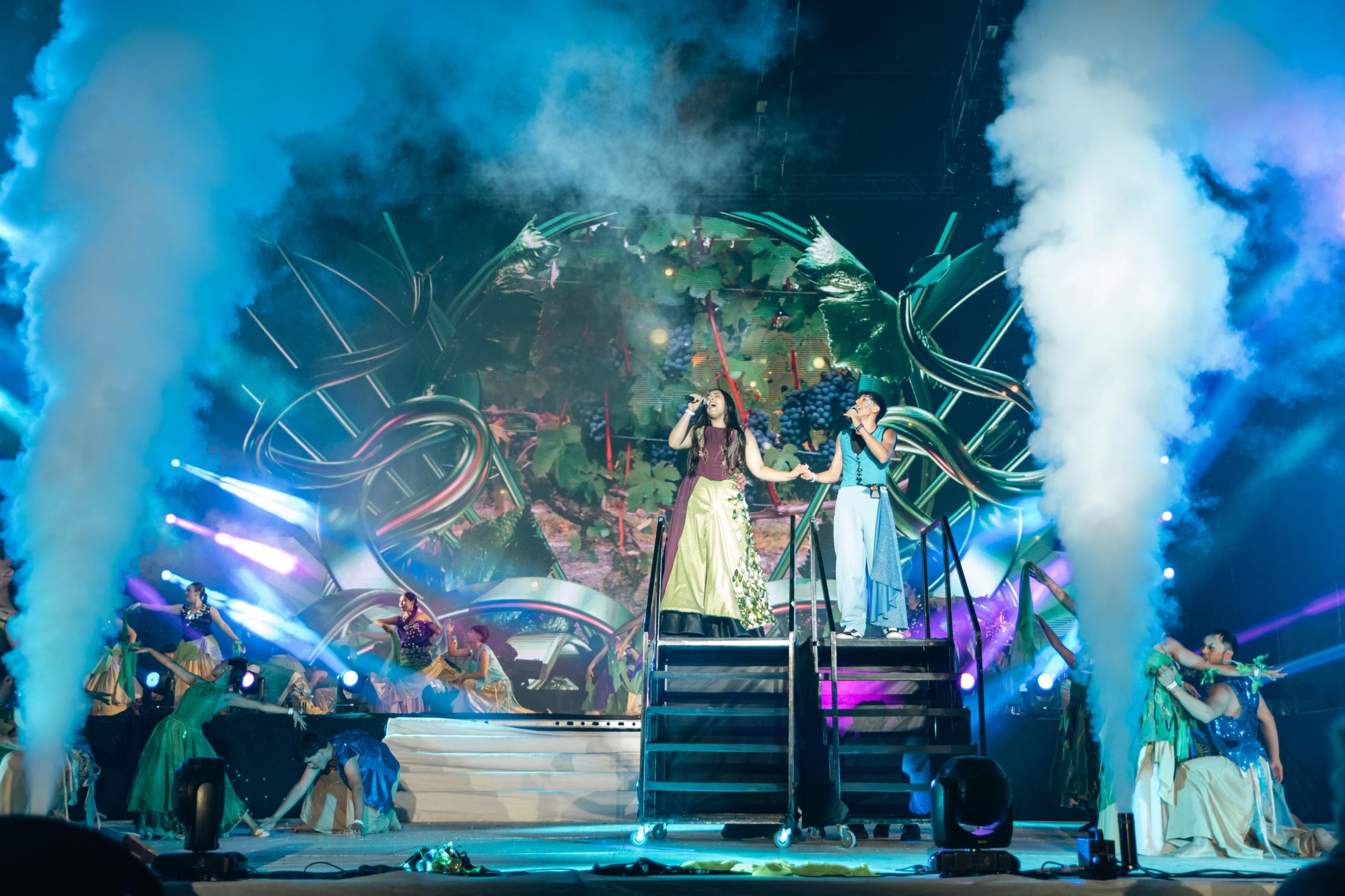 La puesta organizó ese recorrido a partir de dos planos: la memoria encarnada en el Viejo Labriego y la Madre Vendimia, como figuras que resguardan la tradición, y una juventud atravesada por la lógica de la Inteligencia Artificial, que cuestiona el valor de lo transmitido y busca certezas en el dato. El conflicto se desplegó en escenas que abordaron procesos y raíces de la Vendimia y reforzaron la idea de la fiesta como trabajo, encuentro e identidad.