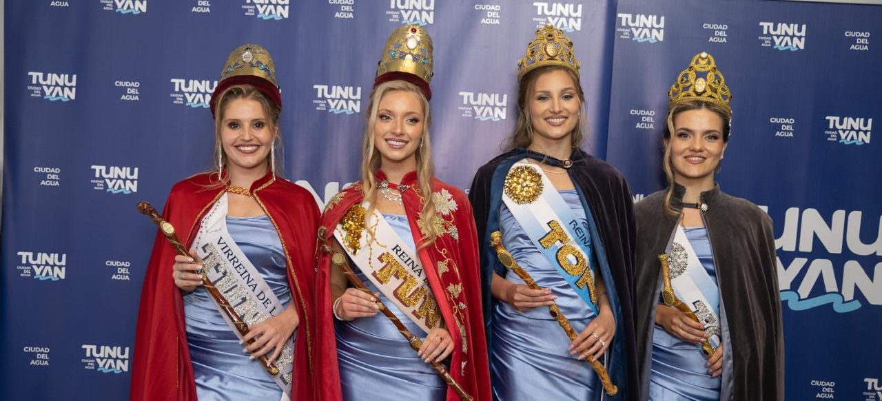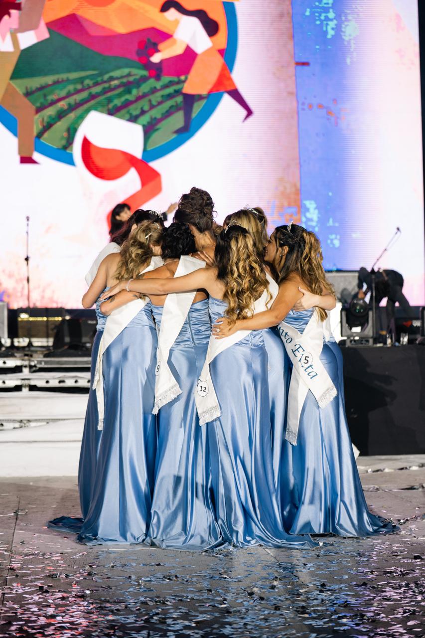 En el tramo de coronación, se concretó el traspaso de atributos y concluyó el mandato de las soberanas 2025: Naomí Giménez, Anna Rodríguez Perabó, Aixa Retamales y Lara Rajic, quienes hasta esa noche ostentaron los títulos de Reina y Virreina Departamental de la Vendimia y Reina y Virreina Nacional de la Tonada.